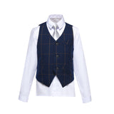 Navy Plaid 2 Piece Kids Boys' Vest and Pants Dress Suits Set