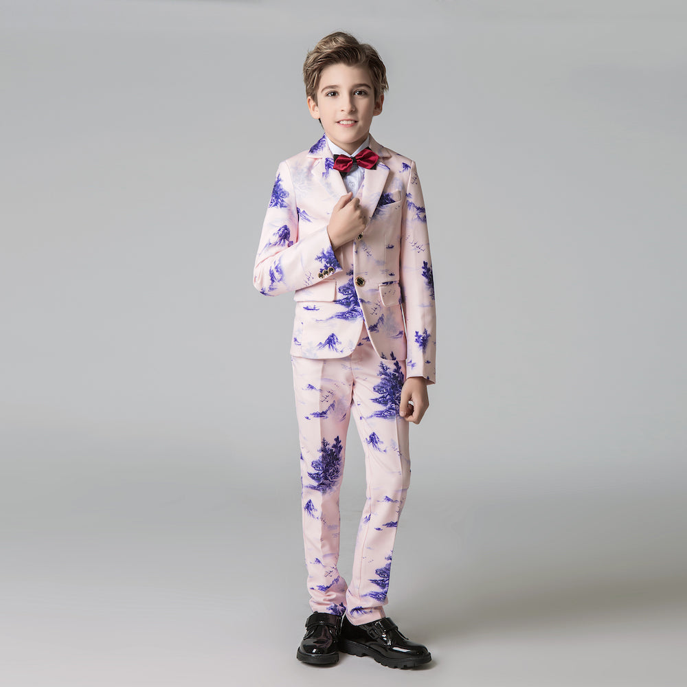 Unique Design Slim Fit Modern 5 Piece Boys Suits